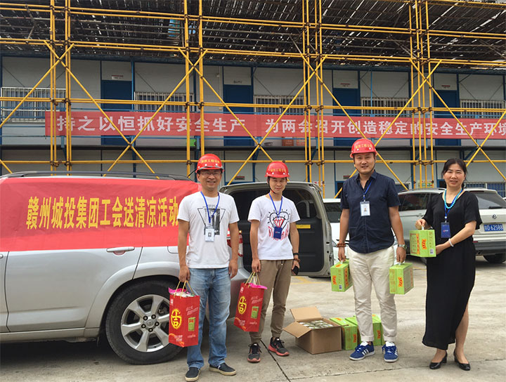 盛夏酷暑,驕陽似火。7月16日至7月23日,贛州城投集團工會認(rèn)真貫徹落實集團黨委的指示精神,心系項目一線的廣大干部員工,積極開展“夏季送清涼”活動,認(rèn)真做好防暑降溫工作,用實際行動踐行黨的十九大精神,聯(lián)系關(guān)愛干部員工,發(fā)揮橋梁紐帶作用。集團工會主席、總經(jīng)理助理肖暉帶隊走訪慰問。