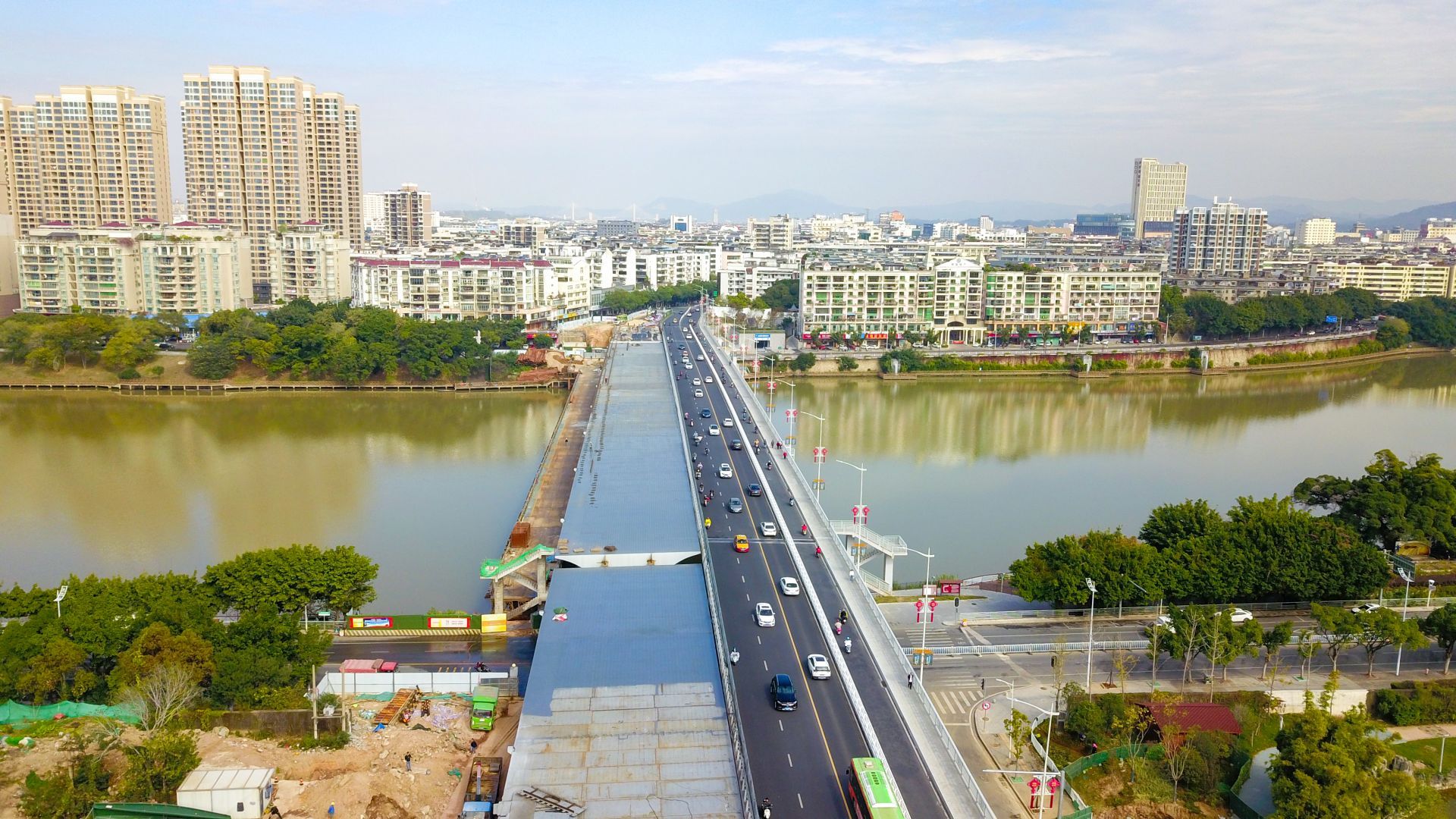 項(xiàng)目建設(shè)內(nèi)容包括拆除既有老橋,在老橋原位新建一幅18米寬橋梁;北岸東側(cè)新建一處地下車庫;西側(cè)改造現(xiàn)有景觀停車場(chǎng);長征大道增設(shè)一對(duì)連接章江南大道的匝道及相關(guān)配套專業(yè)工程等,總投資額3.7億元,施工合同工期為2年,計(jì)劃于2022年6月底完工。