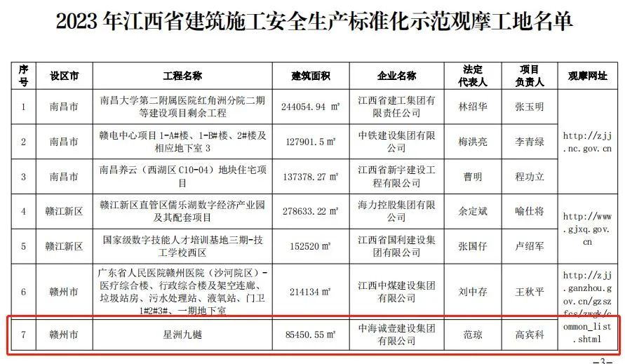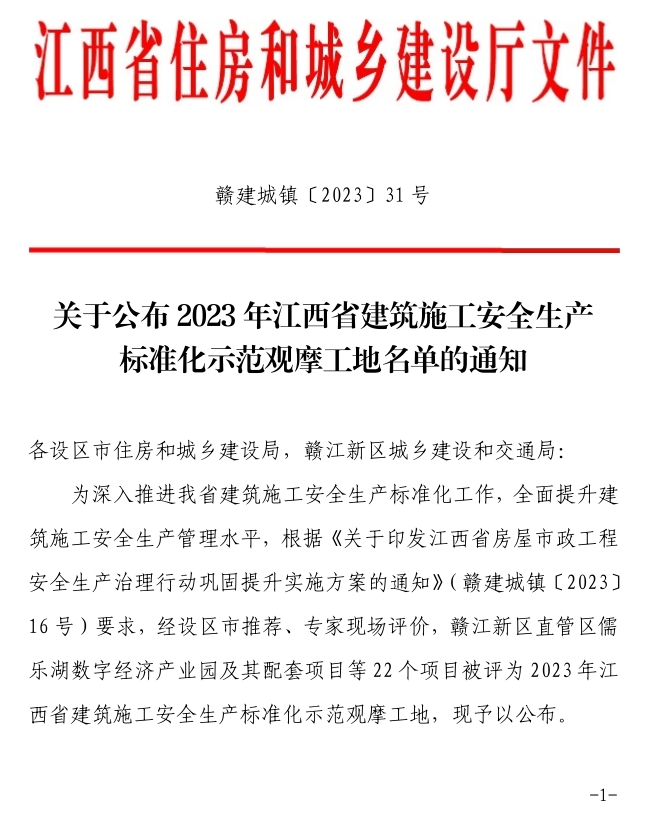 日前,贛州城投集團(tuán)星洲九樾等2個(gè)項(xiàng)目獲評2023年江西省建筑施工安全生產(chǎn)標(biāo)準(zhǔn)化示范觀摩項(xiàng)目。