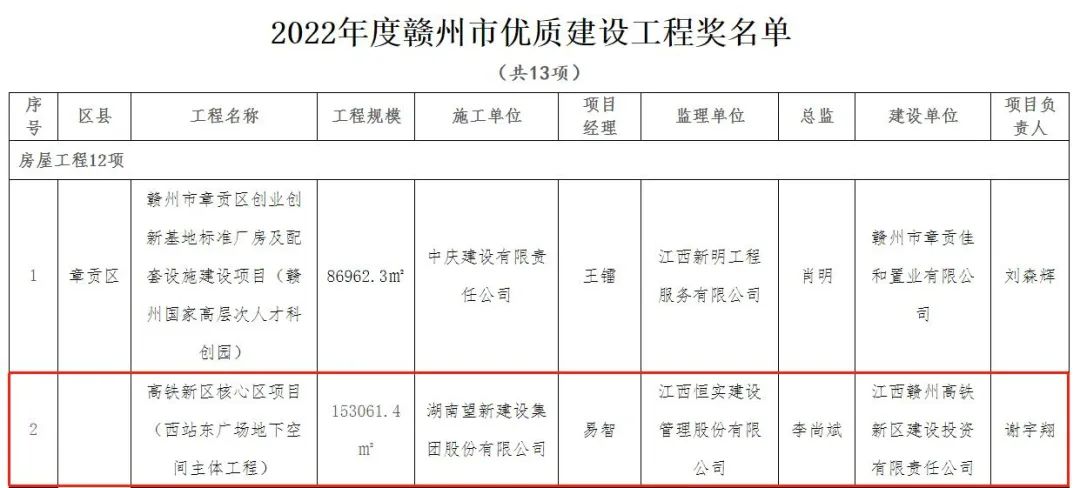 由贛州城投集團(tuán)負(fù)責(zé)建設(shè)實(shí)施的高鐵新區(qū)核心區(qū)項(xiàng)目(西站東廣場(chǎng)地下空間主體工程)榮獲贛州市優(yōu)質(zhì)工程獎(jiǎng),由集團(tuán)組織實(shí)施的市委黨校新建學(xué)員教學(xué)樓建設(shè)項(xiàng)目等4個(gè)項(xiàng)目榮獲2022年上半年贛州市工程質(zhì)量管理標(biāo)準(zhǔn)化示范工地榮譽(yù)稱號(hào)。