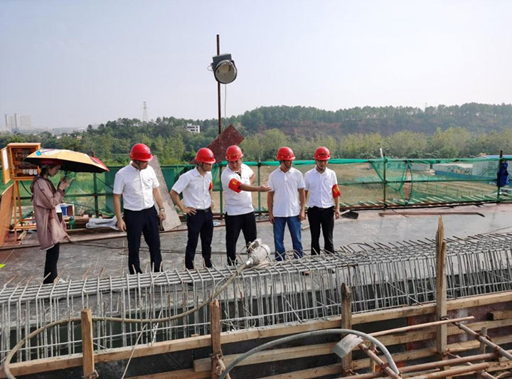 在蟠龍大橋項目,臨時黨支部與城投建工黨支部的黨員查看現場澆筑等工作情況,商量協(xié)調解決運輸車輛等問題,確保項目上的混凝土澆筑施工循序推進。