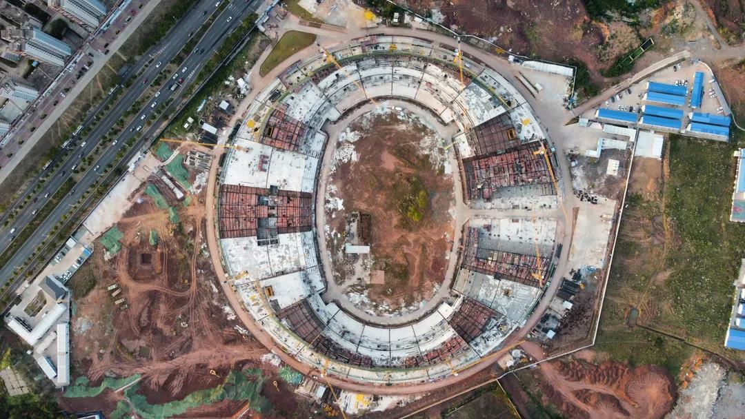 在全民健身中心項目,綜合體育場混凝土結(jié)構(gòu)工程累計完成58%。