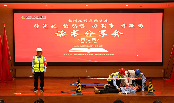 活動在紅色歌曲《唱支山歌給黨聽》中拉開帷幕,抒發(fā)了城投人對黨、對祖國的無比熱愛之情。讀書分享活動中,來自贛州城投建工黨支部、贛州建工集團(tuán)黨支部的6位選手結(jié)合黨史學(xué)習(xí)教育和工作實(shí)際,以蓬勃的朝氣、真摯的感情,熱情謳歌了中國共產(chǎn)黨建黨100年來創(chuàng)下的豐功偉績,深情講述了革命先輩的感人事跡,突出宣傳了國企改革、創(chuàng)新發(fā)展、項(xiàng)目攻堅等方面取得的重大成就,充分展現(xiàn)了城投集團(tuán)廣大黨員職工為群眾服務(wù)、愛崗敬業(yè)、無私奉獻(xiàn)的精神風(fēng)貌。以賽促學(xué)、以賽明史,經(jīng)過角逐,贛州建工集團(tuán)黨支部的陳文港以優(yōu)異表現(xiàn)獲得第一名,贛州城投建工黨支部的曾涵鈺獲得第二名,其余選手獲得優(yōu)秀獎。讀書分享活動前,來自項(xiàng)目一線員工還為大家表演了情景劇《觸電事故應(yīng)急演練》,進(jìn)一步為大家普及安全知識,提高大家的安全意識。