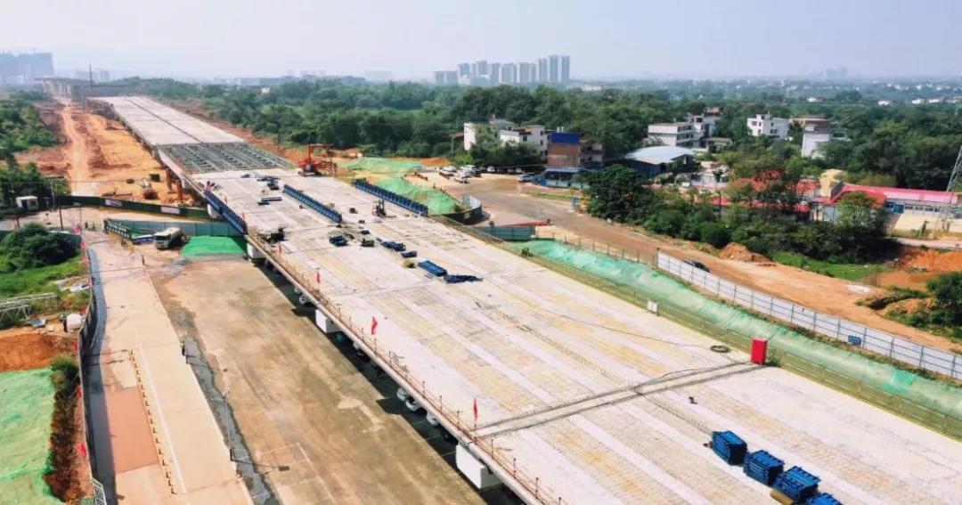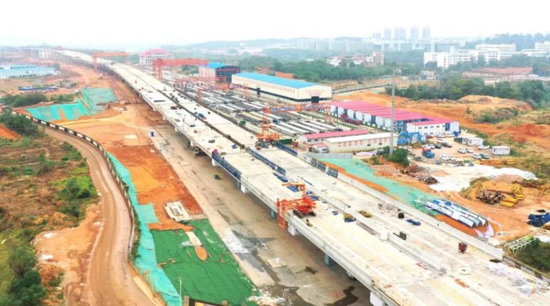 蓉江三路快速路(含地下綜合管廊)項目作為“四橫六縱”中的一條南北走向主干線,南起丁香路,北至筱壩大橋南端接地點,總投資約25.87億元,全長約5.1公里,主路為高架段城市快速路,規(guī)模為雙向6車道。項目于2020年8月1日正式開工,截至2021年11月15日,共完成總工程量的51%,其中橋梁工程完成66.2%,道路工程完成48.7%,地下綜合管廊工程完成約84.6%,預計在2022年年底完工。項目建成后,可實現蓉江新區(qū)、高鐵新區(qū)南北向聯系,大大提高新老城區(qū)交通服務水平,實現贛州交通發(fā)展水平與社會經濟發(fā)展水平相適應。