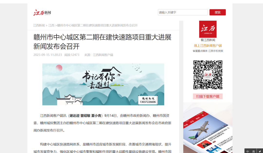 近日,市政府新聞辦、市國資委、贛州城投集團聯(lián)合召開贛州市中心城區(qū)第二期在建快速路項目重大進展新聞發(fā)布會,介紹了黃金大道、贛南大道四標等一批快速路的最新進展情況,江西新聞客戶端、大江網(wǎng)、今視頻、江南都市報、鳳凰新聞、贛南日報、贛州廣播電視臺等多家媒體紛紛聚焦報道贛州市6條在建快速路項目建設(shè)最新成效進展。