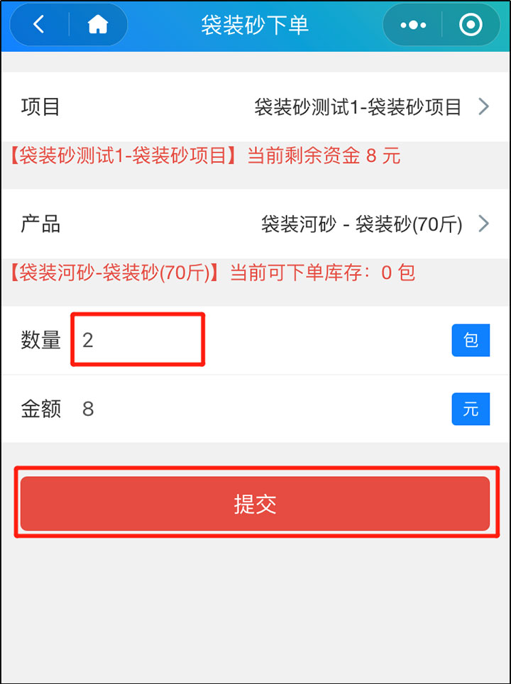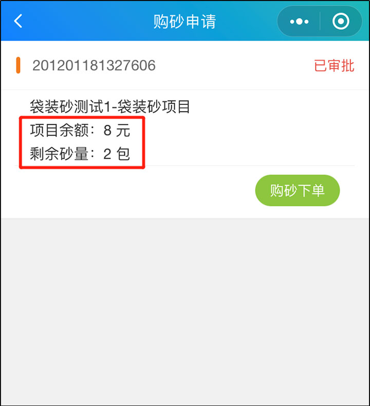 3.選擇“注冊(cè)用砂戶” 第五步:企業(yè)下單 1. 選擇“袋裝砂” 2.選擇“購(gòu)砂申請(qǐng)”
