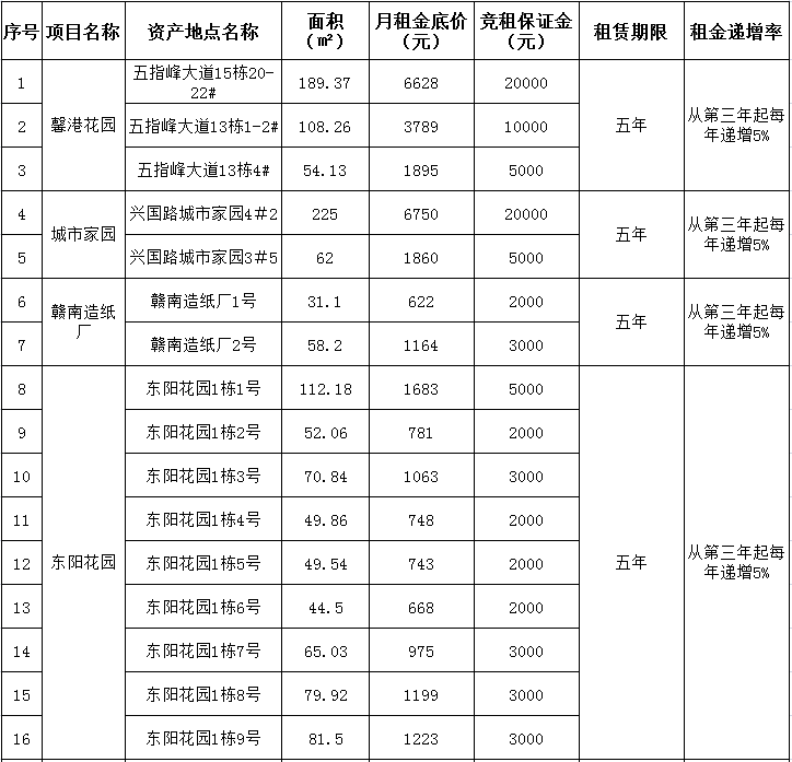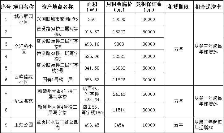 贛州振興實(shí)業(yè)有限責(zé)任公司委托江西潤(rùn)資拍賣有限公司,定于2020年10月27日10:00開始在贛州市公共資源交易中心(長(zhǎng)征大道9號(hào))進(jìn)行國(guó)有資產(chǎn)公開招租,現(xiàn)歡迎符合條件的單位或個(gè)人前來(lái)報(bào)名參加競(jìng)租。