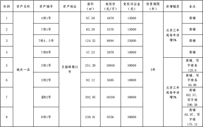 二、招租標(biāo)的、起租價(jià)及競租保證金