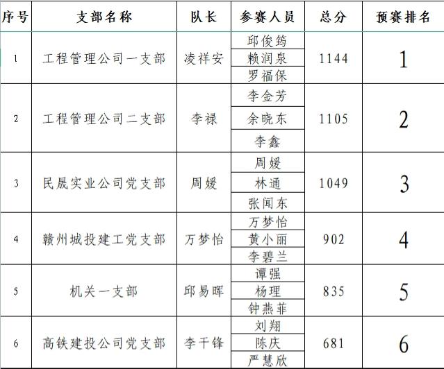 (贛州城投集團黨委黨史學習教育知識競賽預賽結果)
