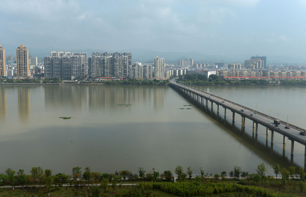 △這是今日于都河兩岸風(fēng)光(2016年8月11日攝)。新華社記者 萬象 攝